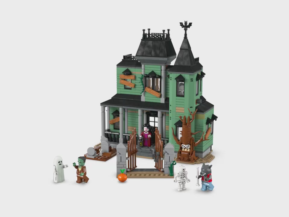 - 5 minifiguras: ¡Este set de construcción LEGO® incluye 5 personajes que dan mucho miedo! Un hombre lobo, un fantasma con una capa que brilla en la oscuridad, un monstruo de Frankenstein, una vampiresa y un esqueleto, cada uno con un accesorio