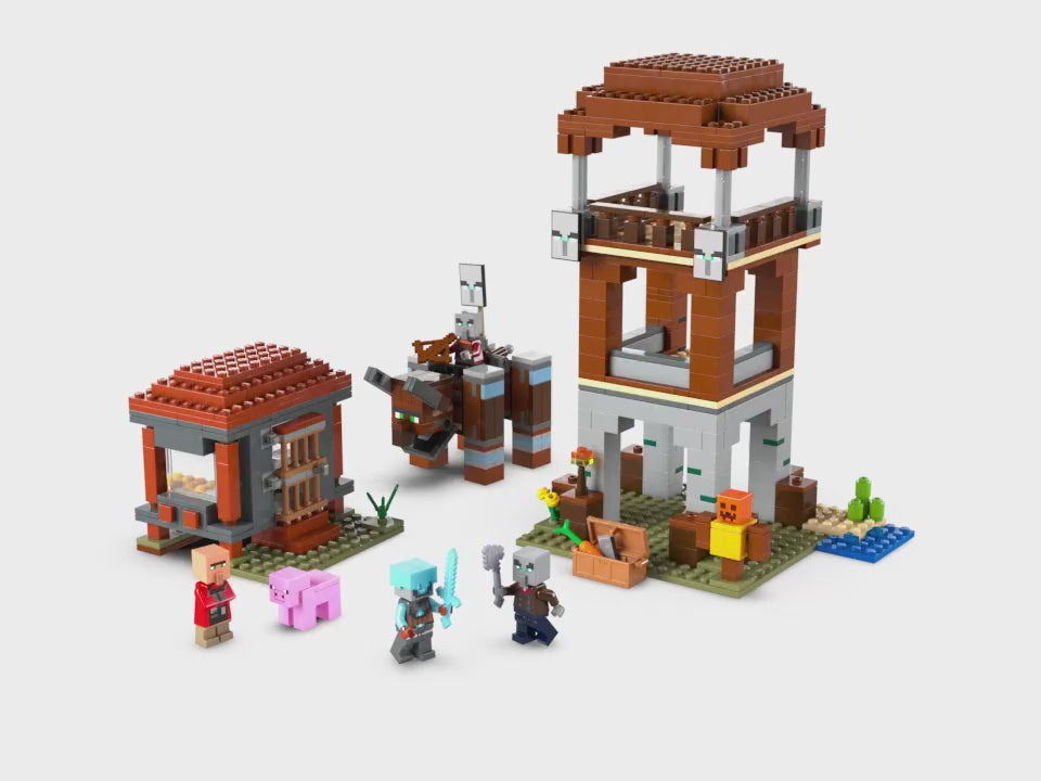 - Batalla en la aldea al estilo LEGO® Minecraft®: El juguete para construir y jugar El Puesto de Avanzada de los Saqueadores y el Devastador viene repleto de la acción de Minecraft para que los peques a partir de 9 años la disfruten en el mundo real