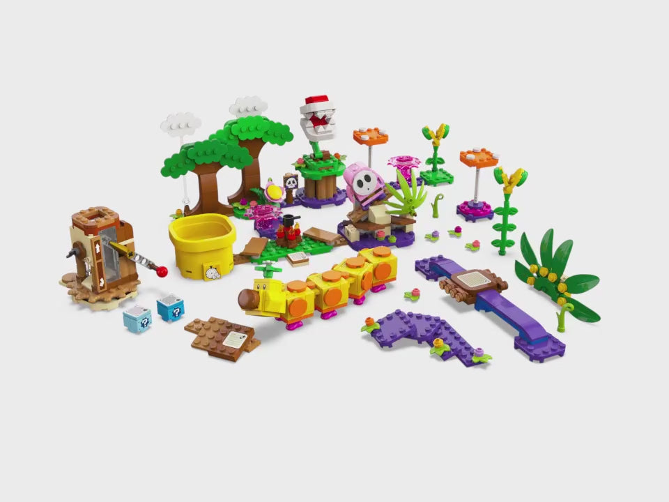 - Juego interactivo: Agrega a LEGO® Mario™, LEGO® Luigi™ o LEGO® Peach™ (figuras no incluidas) a este set y monta en la Floruga, derriba al Shy Guy Rosa, usa la balsa y más para recoger monedas digitales