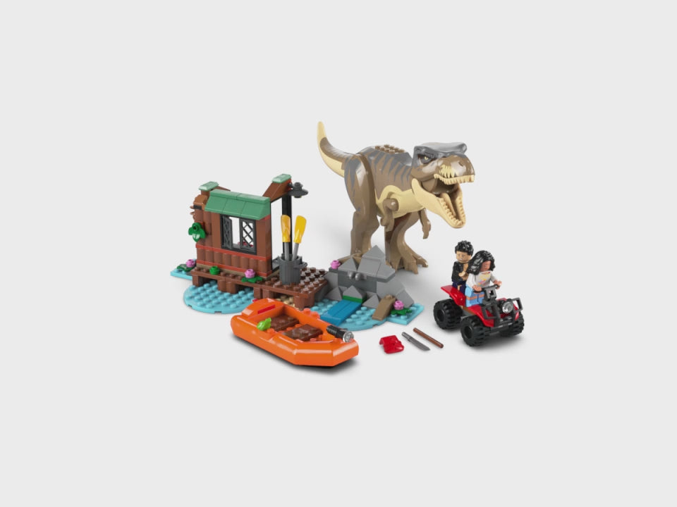 - Un juguete con funciones para estimular la imaginación: El set cuenta con una función de botadura de embarcaciones para lanzar la lancha al agua y el cobertizo se puede destruir con la figura del T. rex (y luego reconstruir) como parte de la acción
