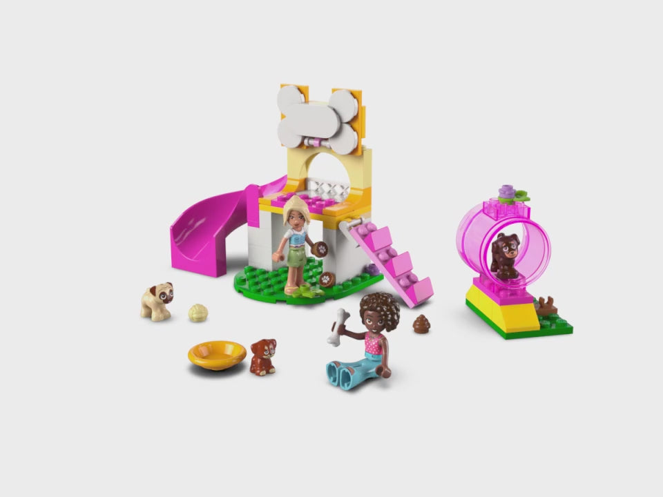 - Kit de construcción con el poder irresistible de los cachorros: El Parque de Aventuras para Cachorros LEGO® Friends para niñas y niños a partir de 4 años se compone de un parque construible, 2 minipersonajes, 3 figuras de perros y accesorios