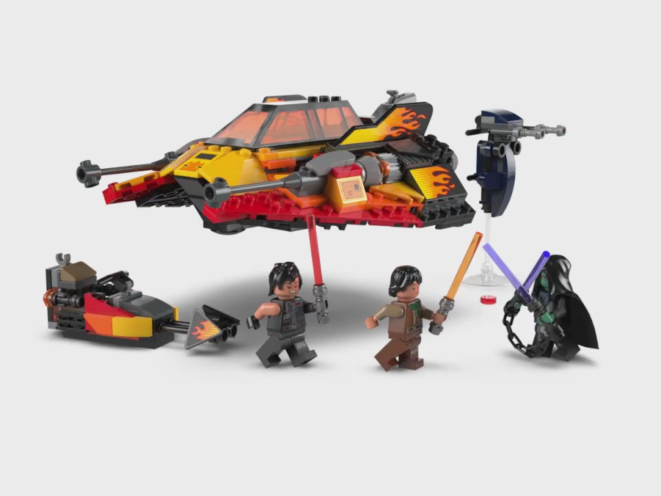 - 2 vehículos LEGO® Star Wars™ en 1: El Speeder de Nieve Force Burner cuenta con pegatinas que representan llamas y doble cabina que se abre con una moto speeder desmontable oculta, así como con un cañón trasero que dispara
